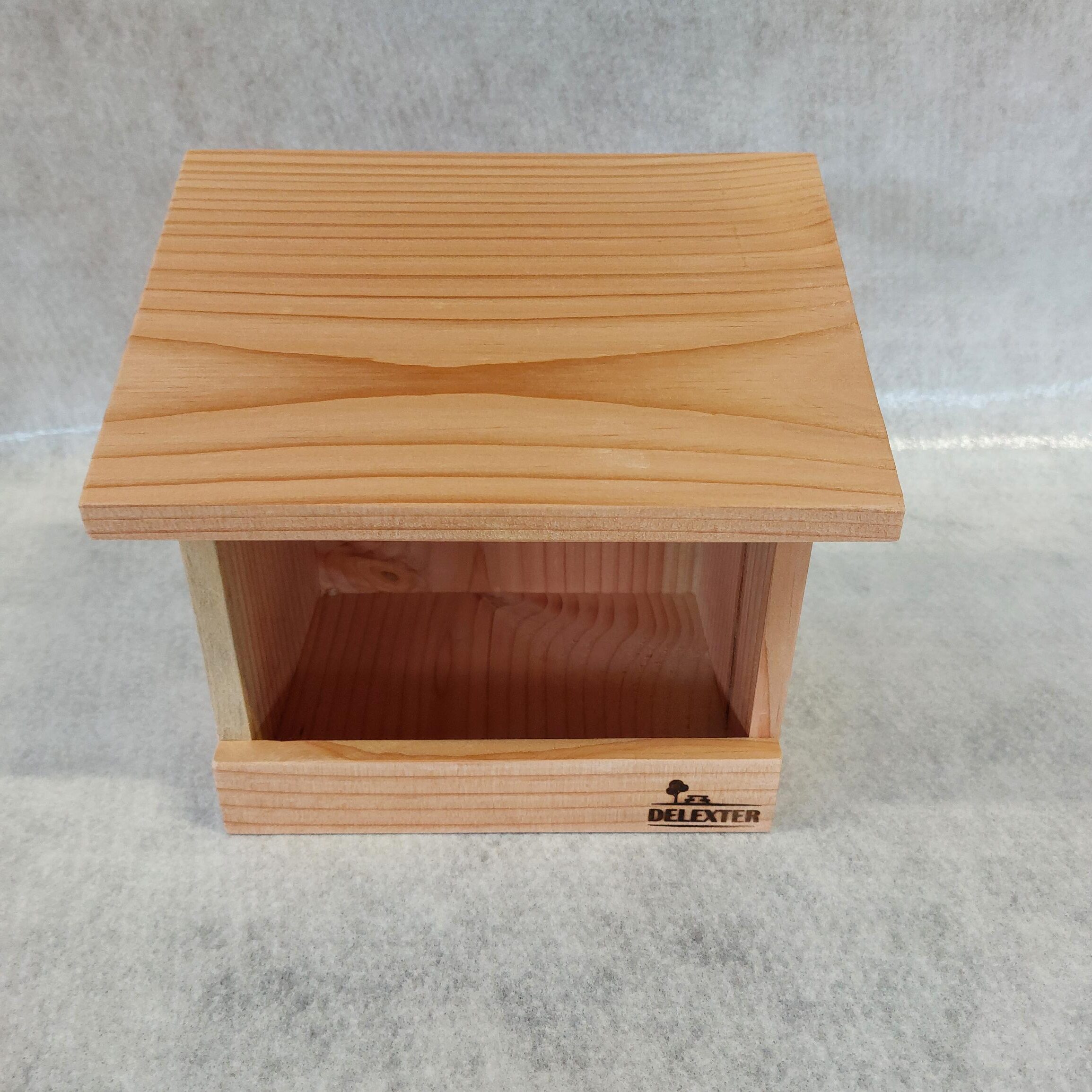 Offrez un espace de nourrissage simple et efficace aux oiseaux de votre jardin avec cette mangeoire en bois naturel au design ouvert.